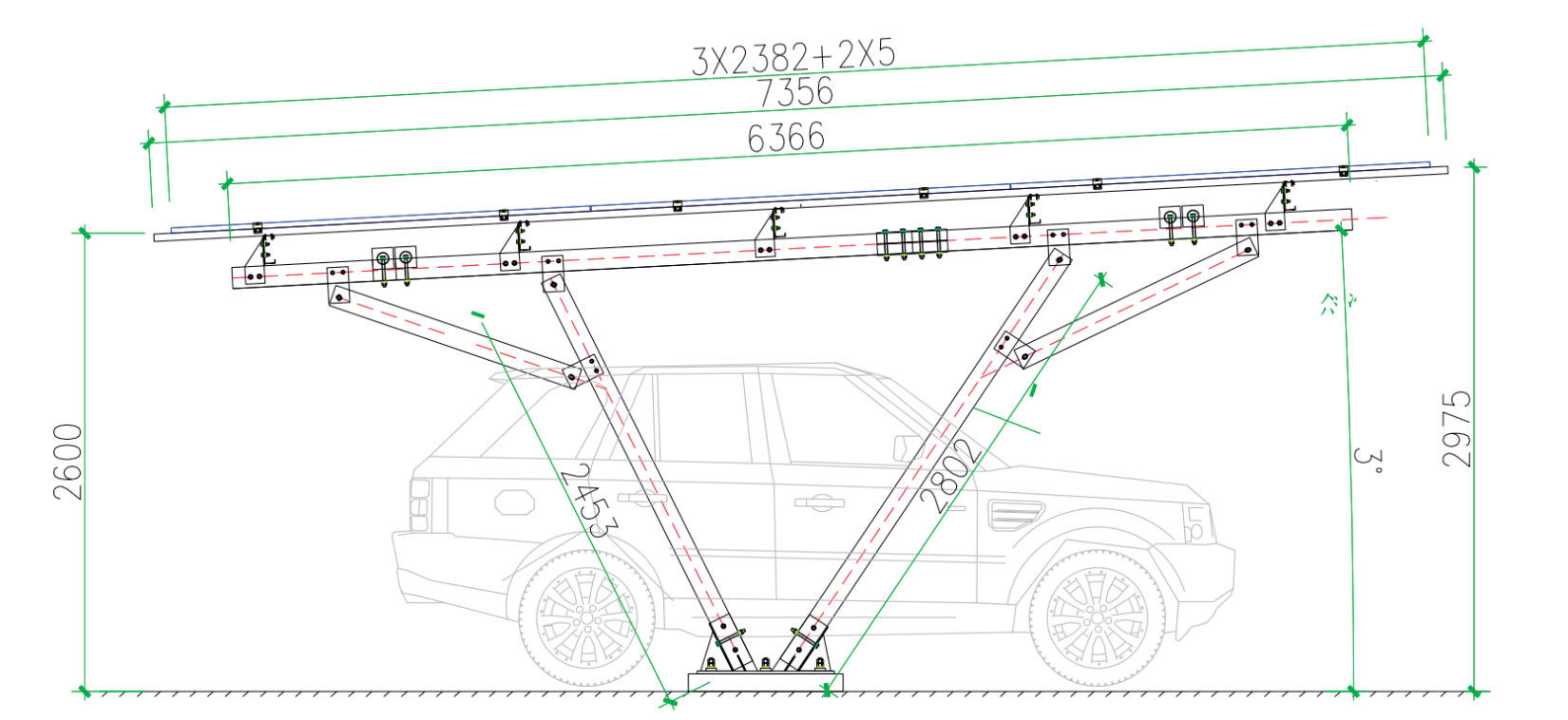 V-type steel solar carport comes with optimized V-shaped force-bearing structure, lightweight but high strength, with reasonable mechanical design to enhance lateral stability. Made of high-quality galvanized/ZAM steel, it effectively resists rust, acid rain and outdoor harsh weather for long-term outdoor use.